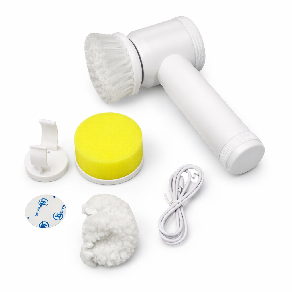 El Cepillo Giratorio Eléctrico 5 en 1 está diseñado para eliminar suciedad incrustada, grasa, moho y manchas difíciles en segundos. Gracias a su potente rotación y a sus tres cabezales intercambiables, puedes adaptarlo a cada superficie: